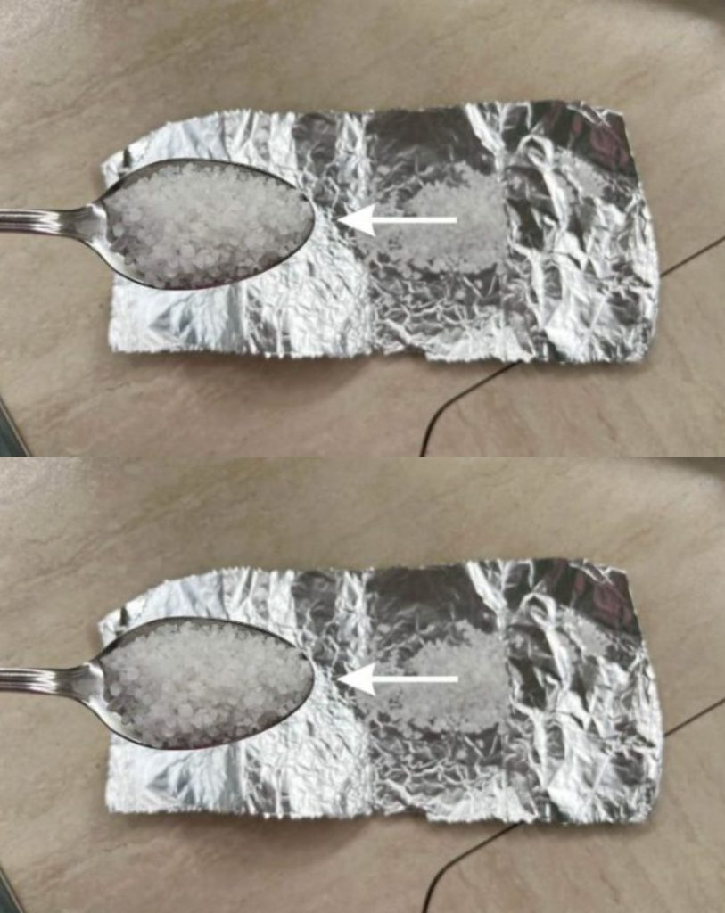 Beispielsweise werden durch Zugabe von grobem Salz und Natron zu Aluminiumfolie überraschende Ergebnisse erzielt. Das Verfahren ist sehr einfach, Sie benötigen einen Behälter, Aluminiumfolie, die mindestens doppelt so lang ist wie der Boden des Behälters, zwei Esslöffel grobes Salz, einen Esslöffel Backpulver und etwas heißes Wasser.