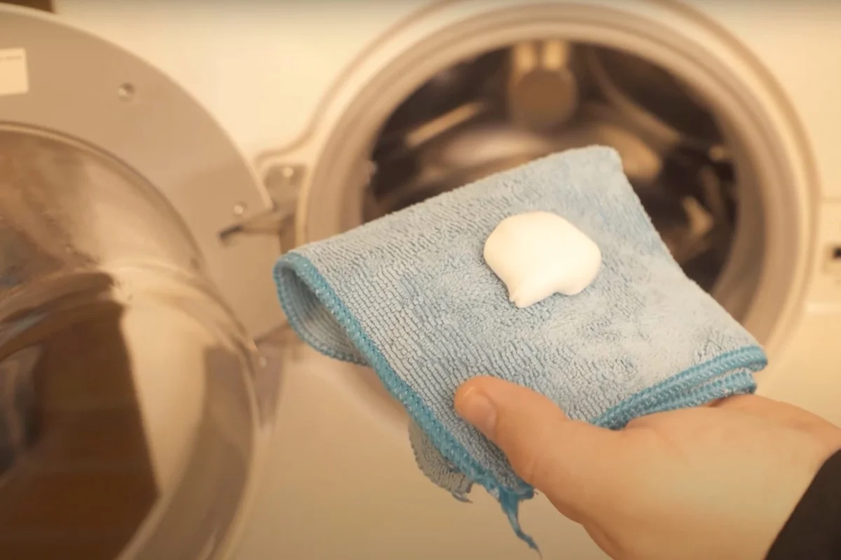 Geben Sie zunächst eine kleine Menge Rasierschaum auf ein Mikrofasertuch und reinigen Sie damit die Außen- und Innenseite des Geräts. Die Reinigung der Außenseite ist einfach: Wischen Sie einfach die Vorderseite einschließlich der Tür ab. Im Innenbereich ist unbedingt auf das Glas der Tür, die Innenfläche der Trommel und die Dichtung zu achten. Vergessen Sie nicht, auch die Waschmittel- und Weichspülerschublade zu reinigen. Lassen Sie die Creme etwa 30 Minuten auf der Oberfläche einwirken.