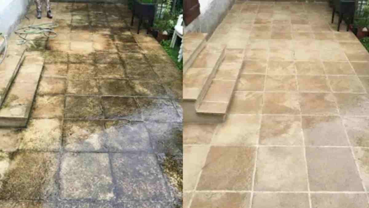 Schritte, um eine dunkle Terrasse zu reinigen.