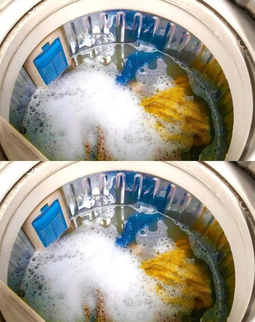 Eine Ansammlung von Seifenschaum kann weiße oder gelbe Flecken und Verfärbungen Ihrer dunklen Kleidung verursachen. Um ein Vergilben und das Auftreten von Kratzern zu vermeiden , weichen Sie die Wäsche in einer Schüssel mit einer Tasse weißem Essig, verdünnt in 3,5 l Wasser, ein. Dann geh zur Waschmaschine.