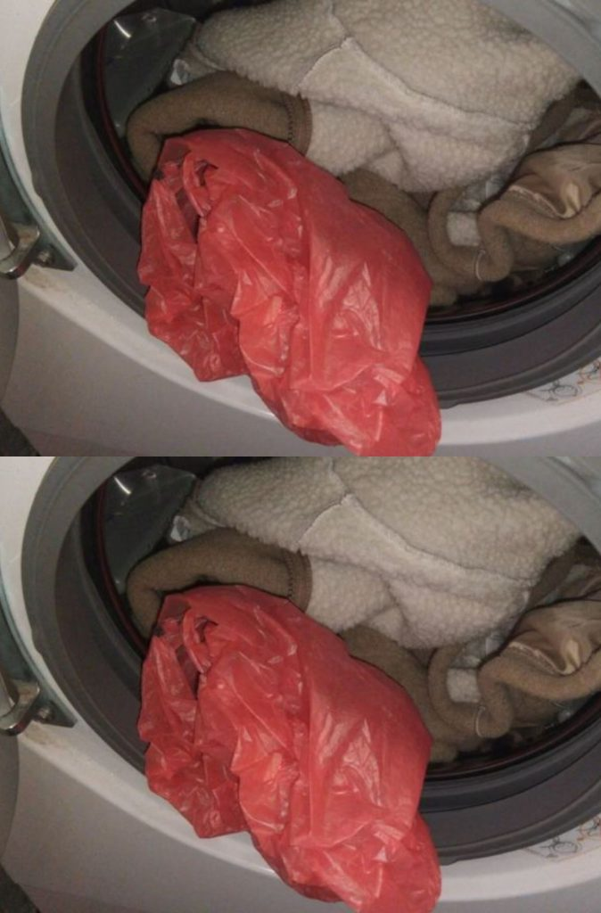 Legen Sie eine Plastiktüte in die Waschmaschine. Du wirst es immer wieder tun