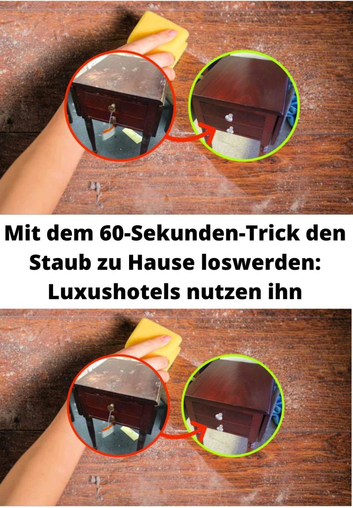 Heute verraten wir Ihnen einen Trick, der in Hotels angewandt wird und mit dem Sie sich in nur 60 Sekunden vom Staub in Ihrer Wohnung verabschieden können. Sind Sie bereit, erstaunt zu sein?