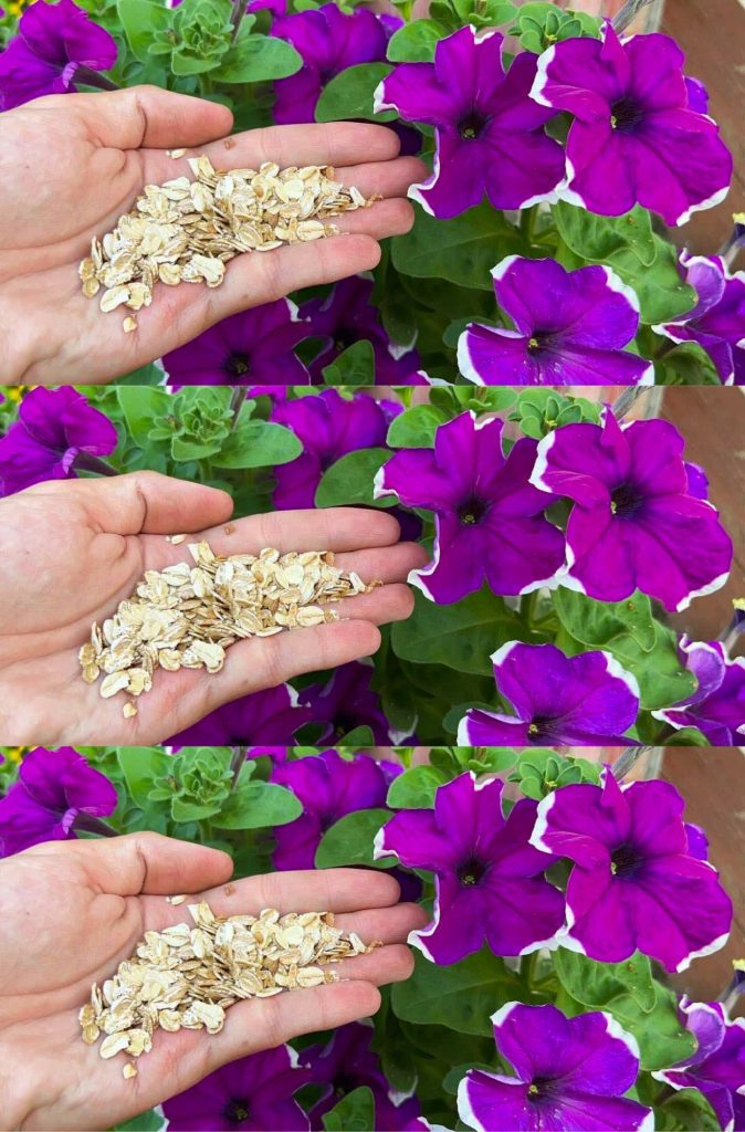 Wenn Sie die Blumen im Garten füttern möchten, können Sie eine Lösung aus 10 Liter Wasser mit einer Tasse Haferflocken zubereiten . Dann lässt man es drei Tage lang ziehen, wobei man jedes Mal umrührt, und dann wird dieses Wasser verwendet, um die Pflanzen zu bewässern.
