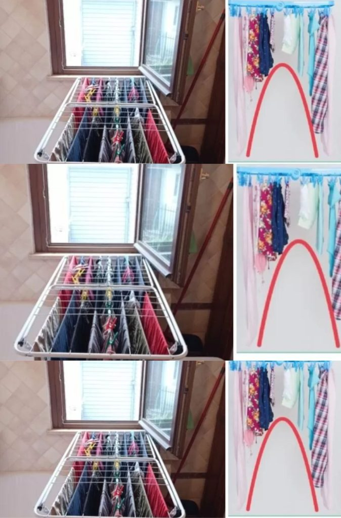Das sind gängige und wohlbekannte Mittel, aber wenn es um das Aufhängen von Wäsche geht, wissen wir dann, welches die effizienteste Methode ist? Diejenige, die die Zeit verkürzt und somit auch die Feuchtigkeit in dem Raum, in dem wir sie aufhängen, verringert? Unter den möglichen Methoden gibt es eine, die es wert ist, in Betracht gezogen zu werden: Sie wird in Japan angewandt und ist genau darauf ausgelegt, Zeit und Raum zu optimieren.
