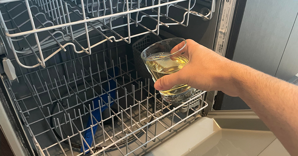 Sie können eine Tasse weißen Essig in den Spülmittelbehälter oder den Besteckkorb Ihrer Spülmaschine geben oder einfach eine kleine Menge direkt auf den Boden Ihrer Spülmaschine gießen, bevor Sie einen Spülgang starten.