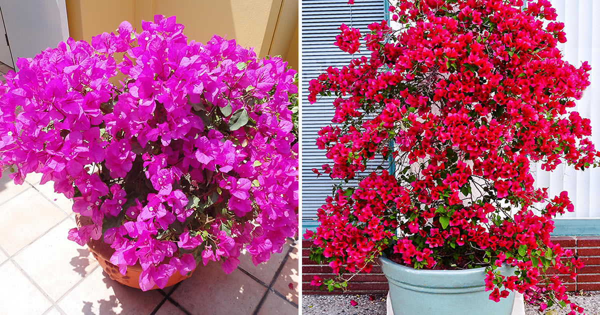 Um eine üppigere Blüte zu erzielen, pflanzen Sie die Bougainvillea in einen Topf, der das Wurzelwachstum leicht einschränkt, an einem vollsonnigen Standort und vermeiden Sie übermäßiges Gießen. Bougainvillea blüht am besten, wenn ihre Wurzeln kompakt und am Topf befestigt sind.