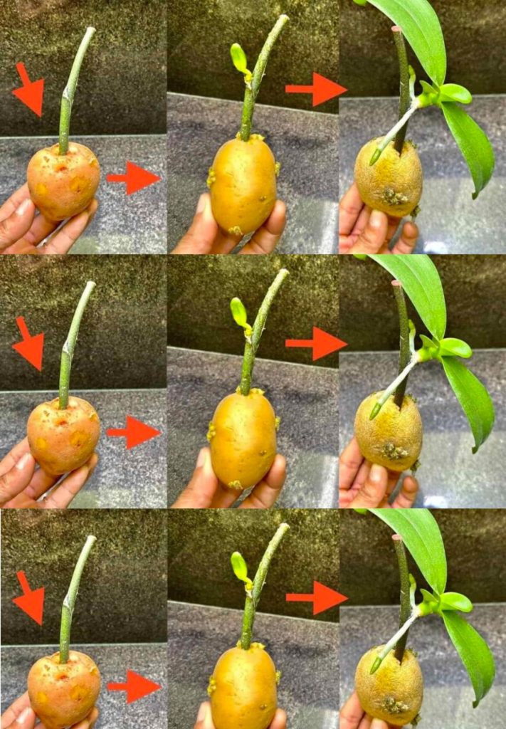 Wenn wir Orchideen aus den Zweigen der Blüten unserer Pflanzen vermehren möchten, können wir dies mit einigen Elementen tun, wie z. B. der Schale einer halben Kartoffel. Es ist eine der hervorragenden organischen Substanzen, die den Sprossen helfen, sehr schnell zu wachsen.