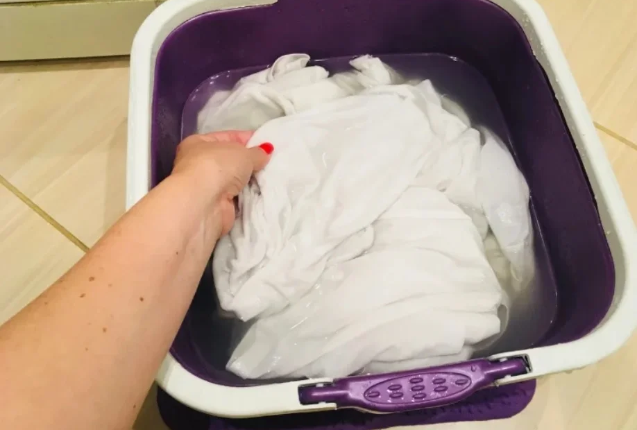 - Vorwäsche: Bevor Sie direkt mit dem Bleichen beginnen, ist es wichtig, den Stoff im normalen Waschgang in der Waschmaschine oder von Hand zu waschen, um den häufigsten Schmutz zu entfernen.